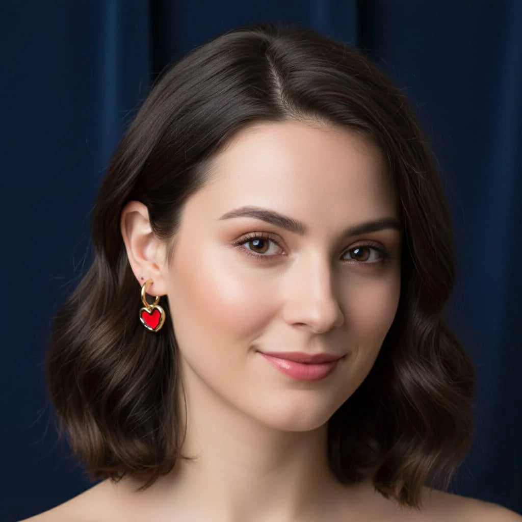 Ruby Heart Gold hoops
